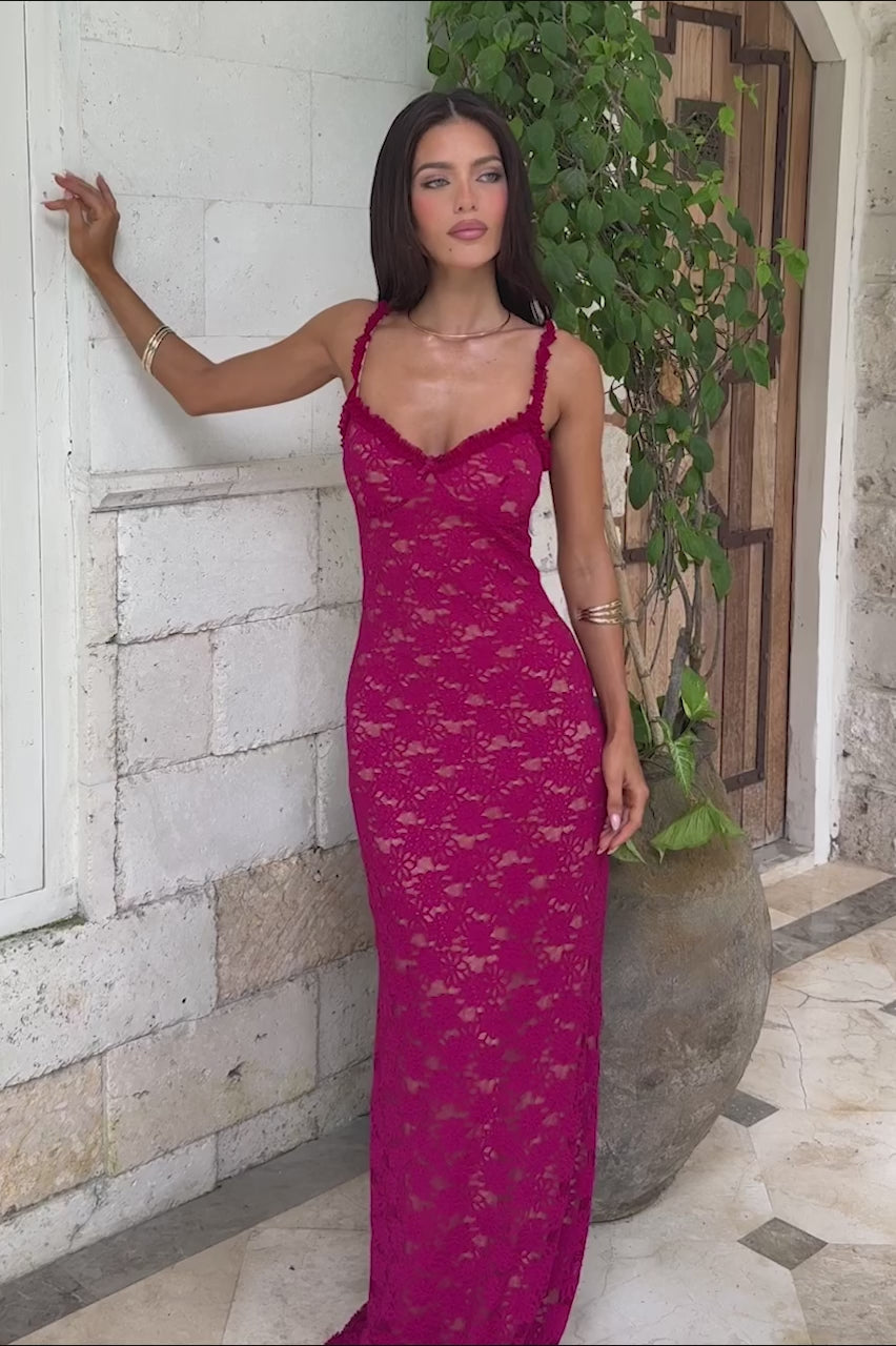 Sarta Berry Lace Maxi Dress